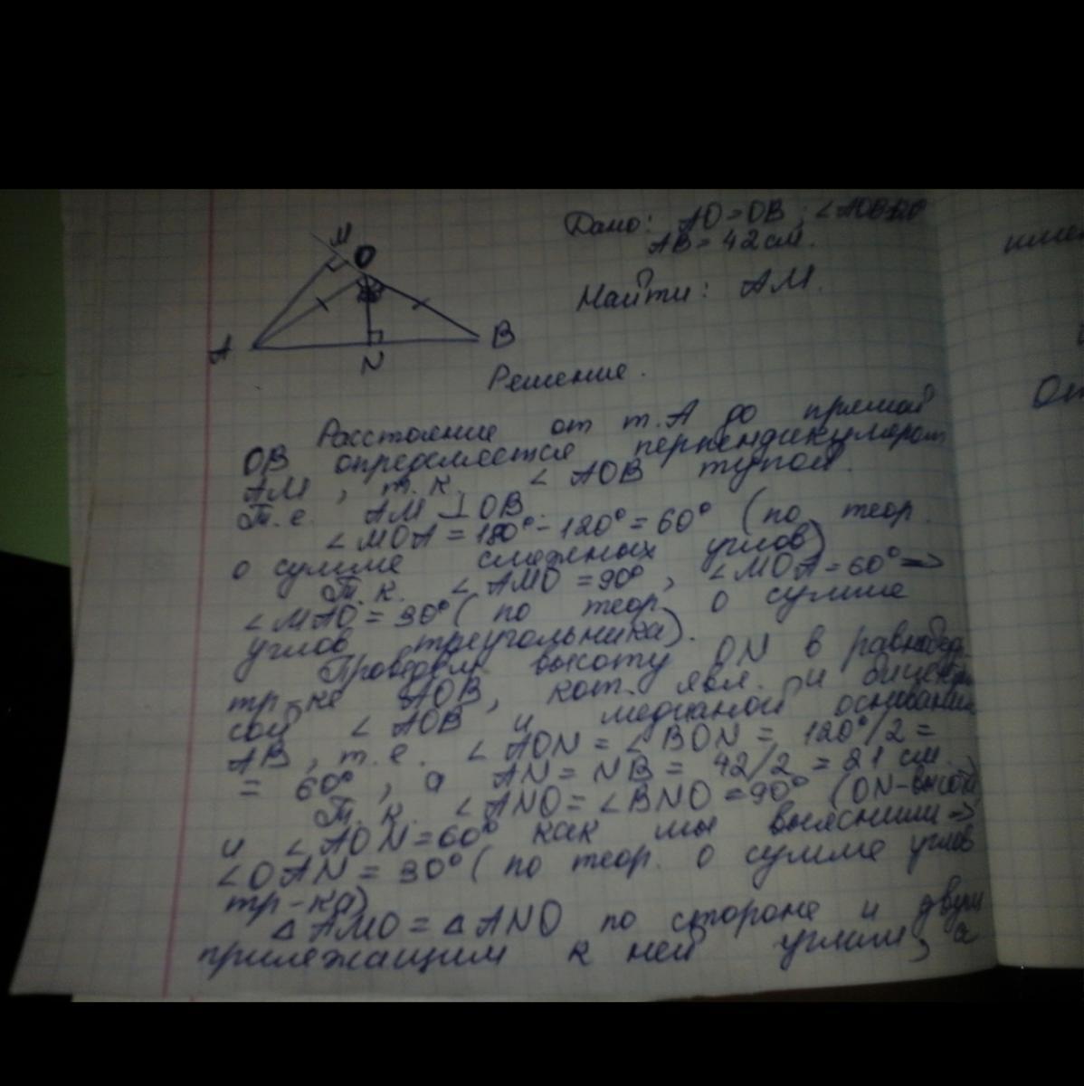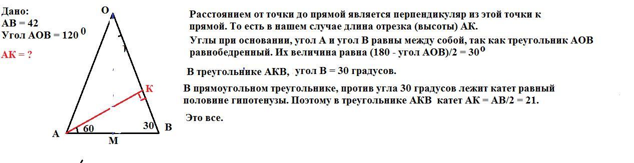 Что значит расстояние до прямой ob от точки А? Нужно найти основание АВ?