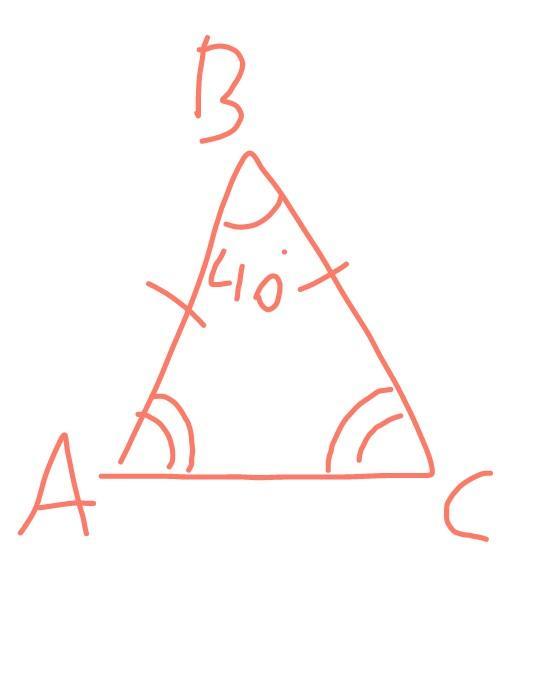 угол ВАС = углу ВСА = (180°-40°):2 = 70°