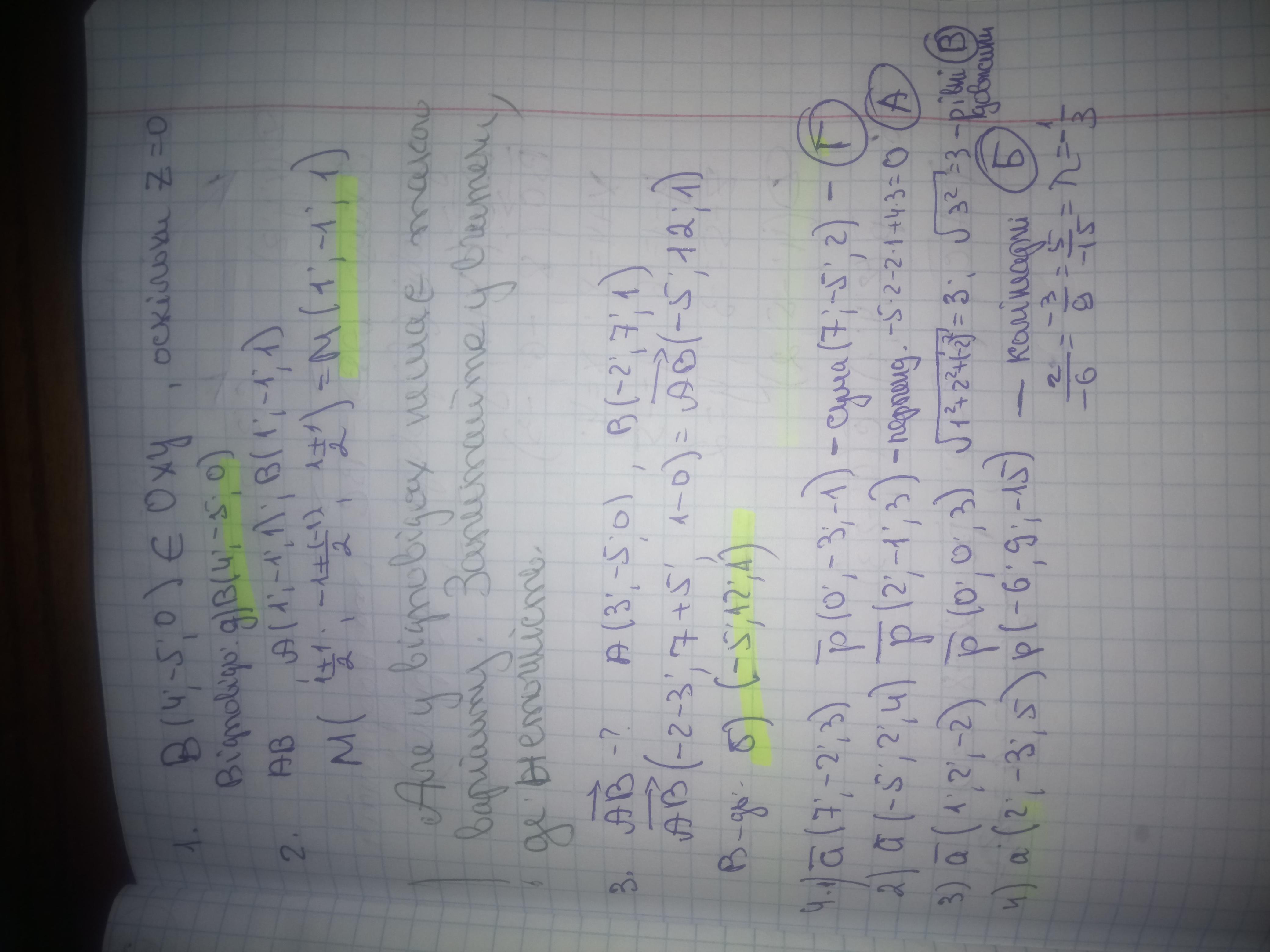 3. Знайти координати вектора АВ , якщо А( 3;-5;0), В( -2;7;1).