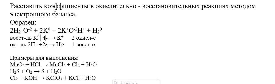 Расставить коэффициенты в окислительно - восстановительных реакциях методом электронного баланса.
