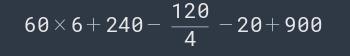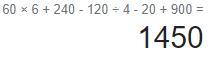 Ответ:60*6+240-120:4-20+900=1450