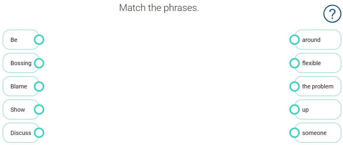 Английский язык, даю 25 баллов. Match the phrases. Be,Bossing,Blame,Show,Discuss.