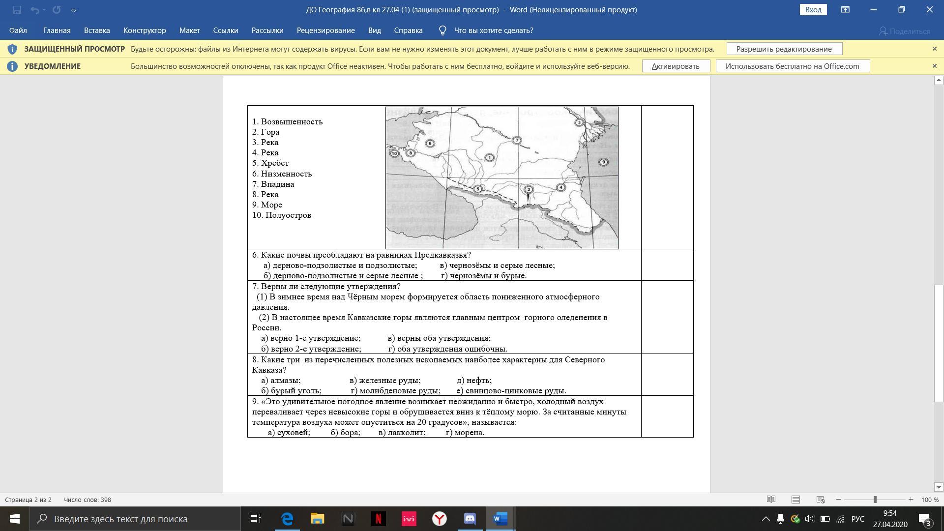 Ответ:1-а;2-в;3-а,в;4-б,г,а,в;5-1-река
