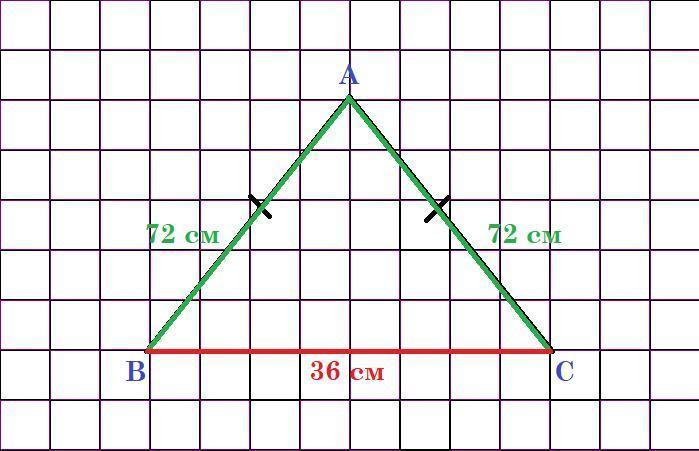 То есть боковые стороны нашего треугольника равны по 72 см.