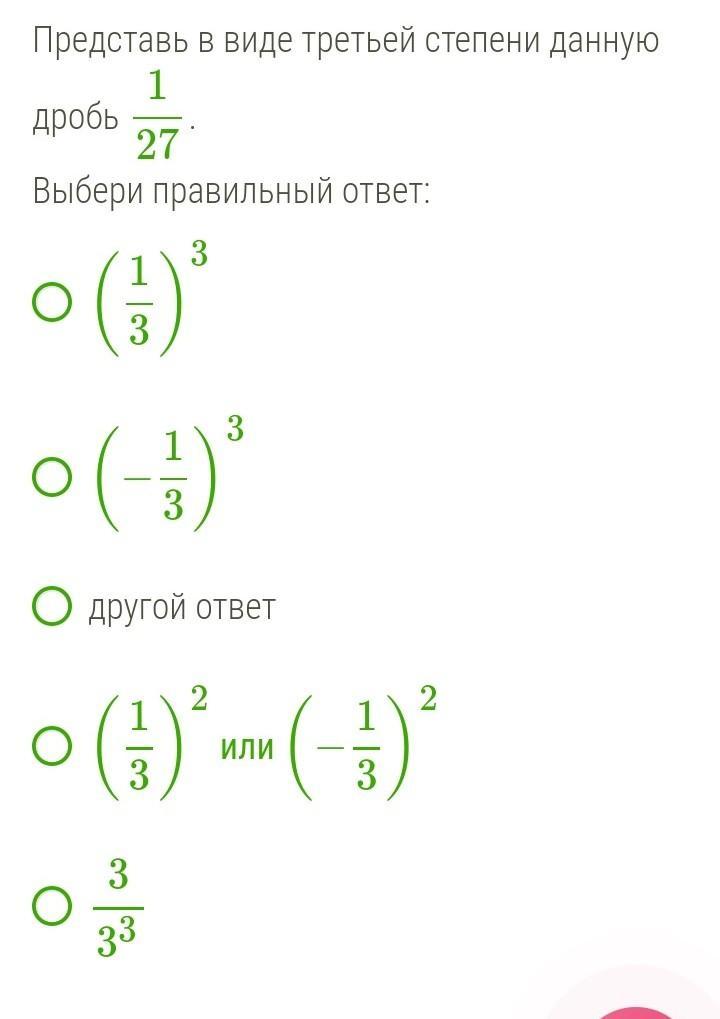 1/3³ это правильный ответ потому что 1³= 1, а 3³= 27