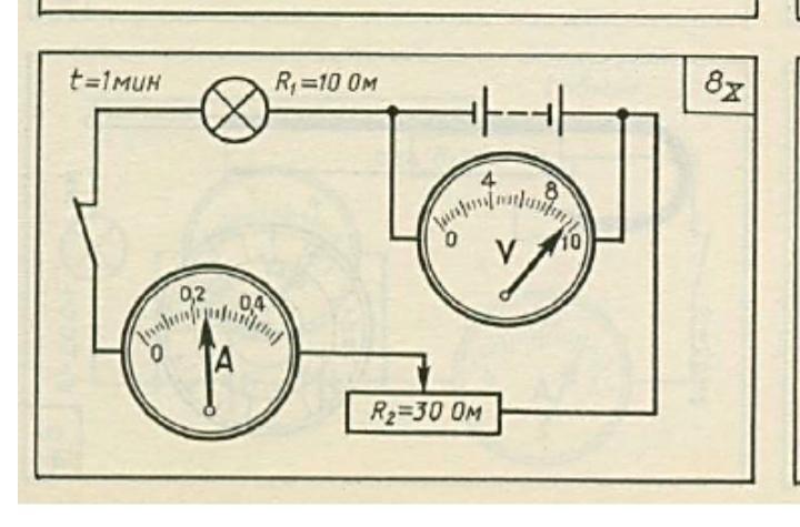 Постоянный ток! Помогите пожалуйста! 1. Определите цену деления шкалы амперметра. 2. Определите верхний предел измерения силы тока. 3. Определите силу тока в цепи, абсолютную погрешность и вычислите относительную погрешность. 4. Определите цену деления шкалы вольтметра. 5. Определите верхний предел измерения напряжения вольтметром. 6. Определите напряжение на батарее, абсолютную погрешность и вычислите относительную погрешность. 7. Рассчитайте напряжение на лампе. 8. Рассчитайте напряжение на реостате. 9. Вычислите мощность тока в лампе. 10. Вычислите мощность тока в реостате. 11. Вычислите количество теплоты, выделяемое нитью накала лампы, включенной в цепь, за время, указанное на карточке. 12. Вычислите количество теплоты, выделяемое реостатом в рабочем состоянии за время указанное на карточке.