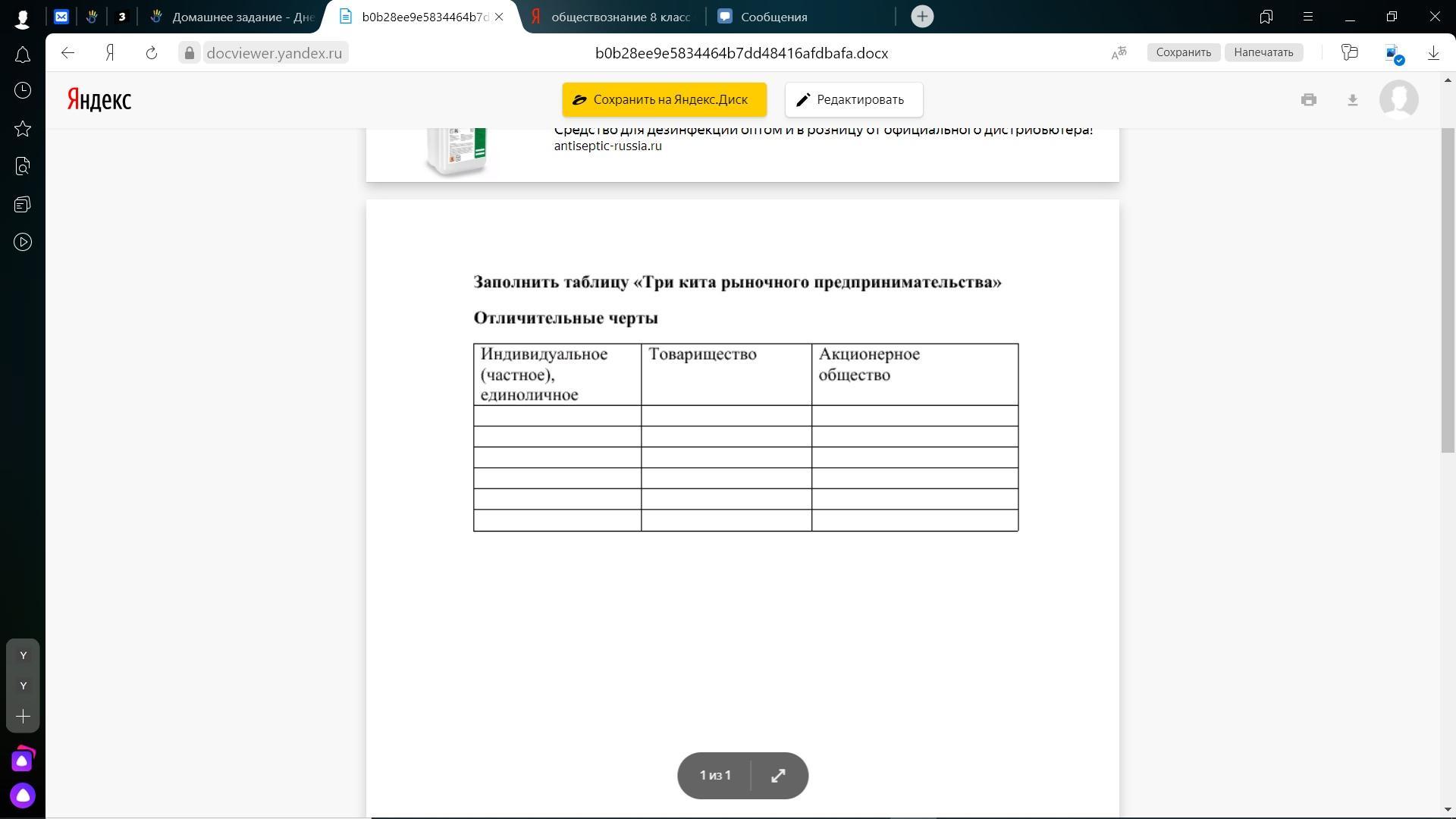 Заполнить таблицу «Три кита рыночного предпринимательства»