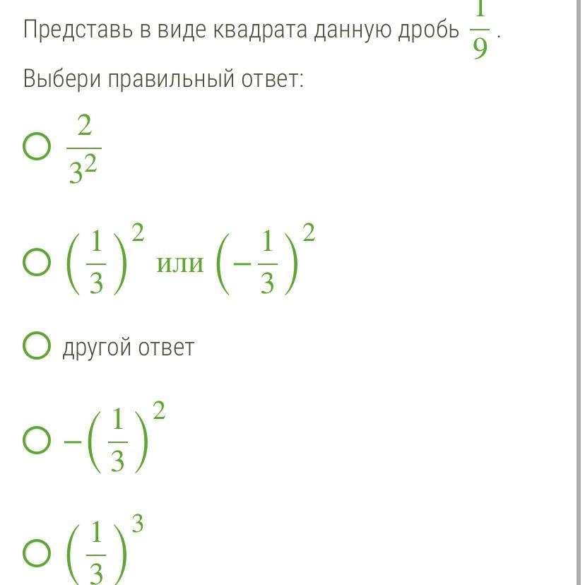 (1/3)^2 или (- (1/3))^2 Ответ : второй