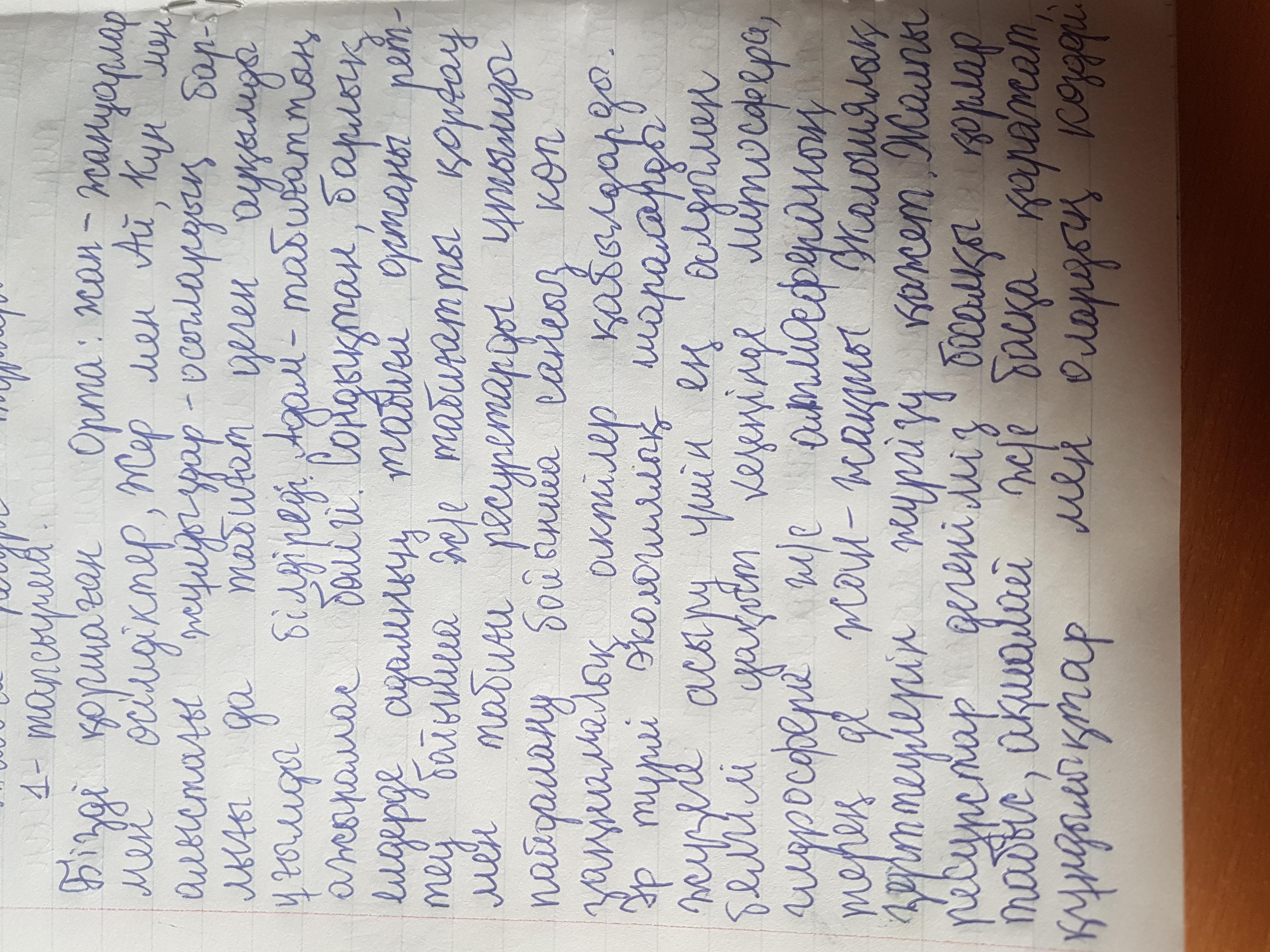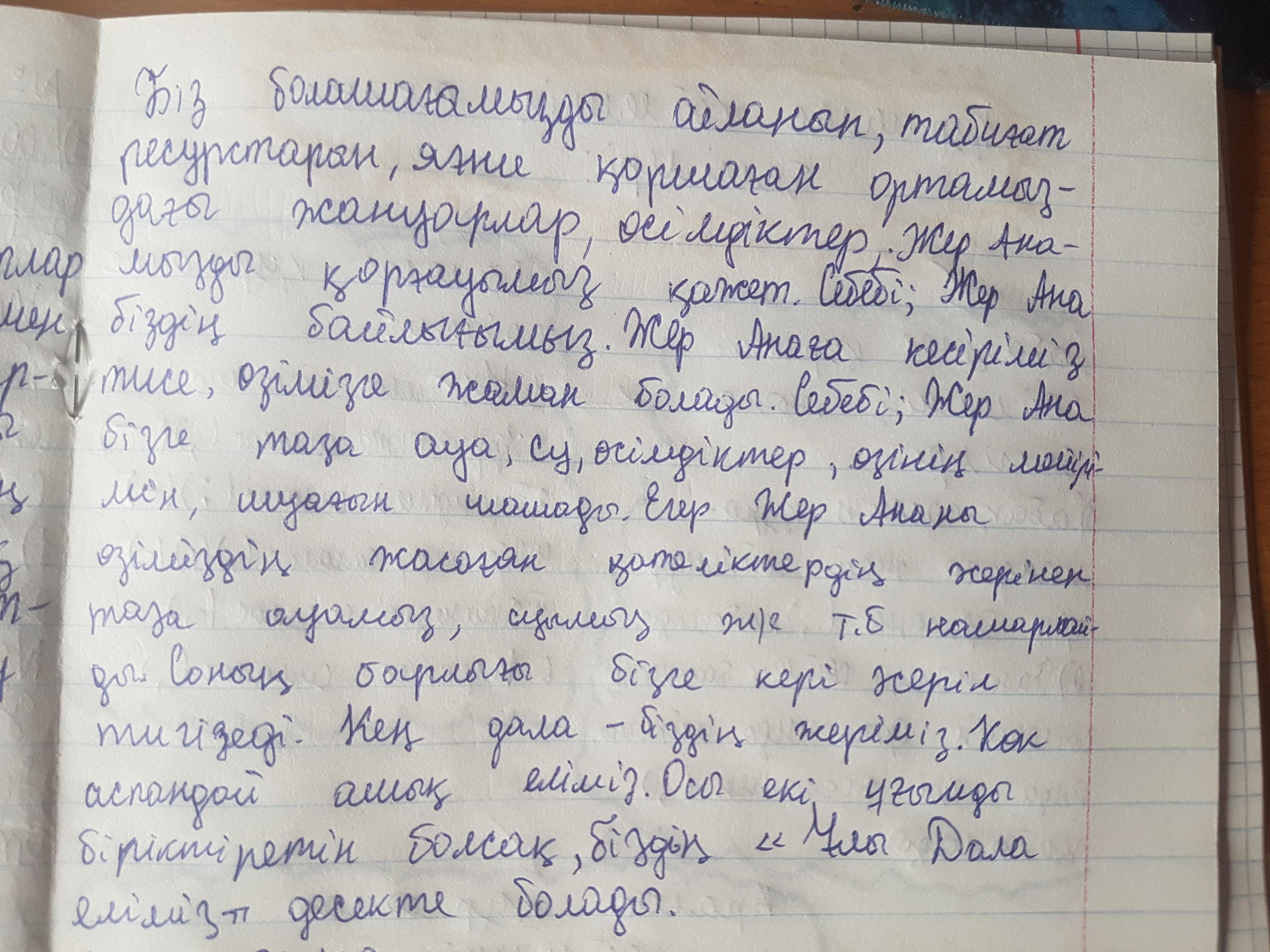 《Табиғат》,байлық》,《қор》,《игілік》,《экология》,《Ұлы дала елі》,《болашақ》,《ресурс》сөздерін қатыстыры мəтін құра?)