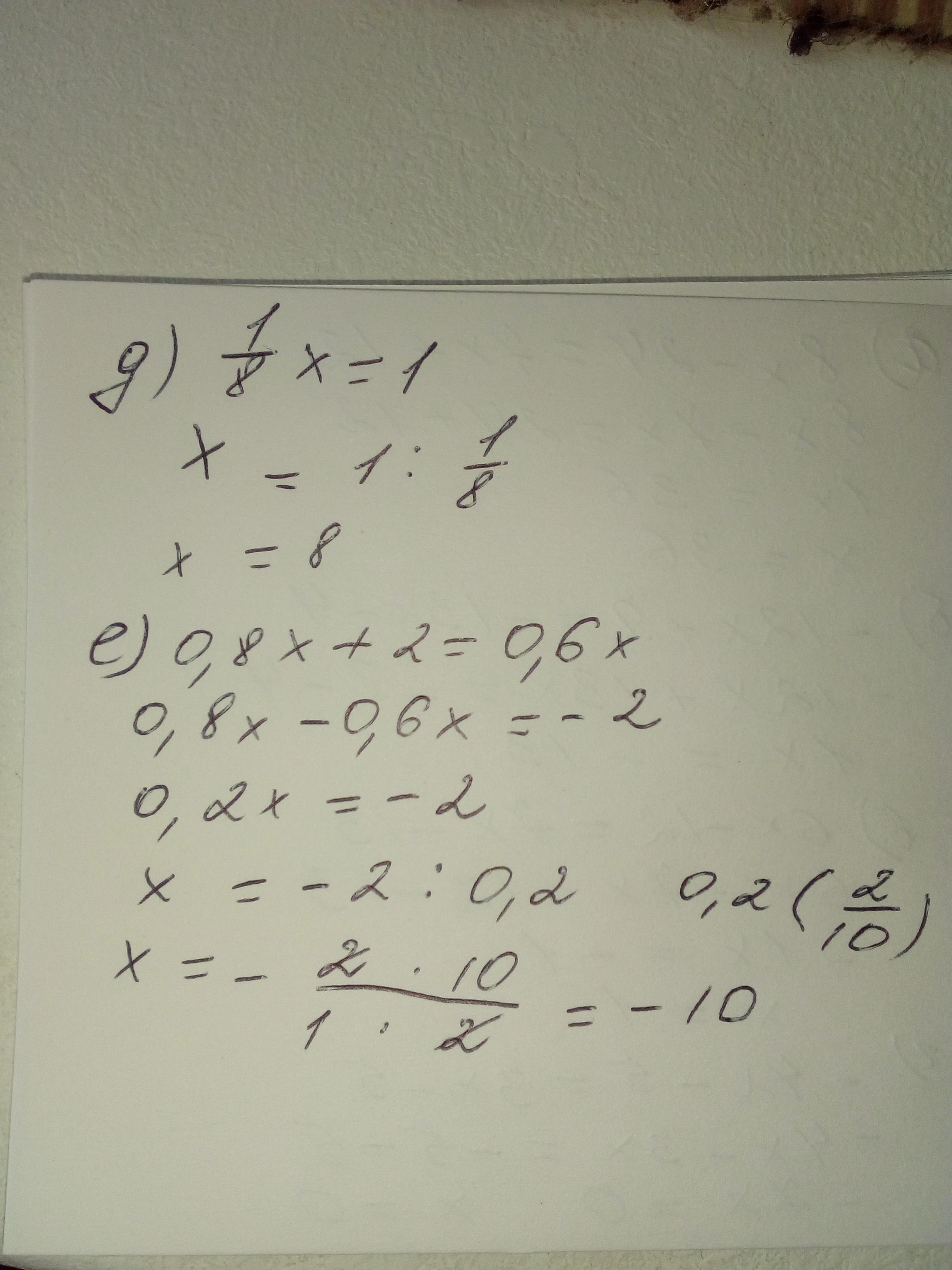 е) 0,8х + 2 = 0,6х.