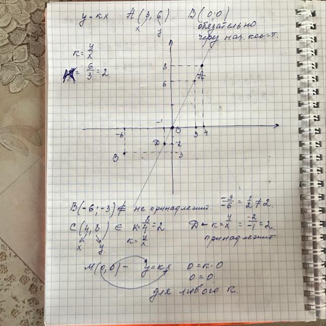График функции y = kx проходит через точку A (3; 6). Принадлежит ли графику этой функции точка: