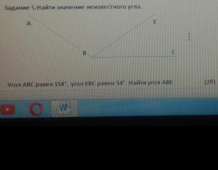 /ABE = /ABC - /EBC = 158 - 54 = 104 градуса