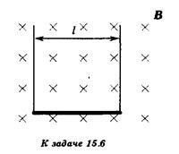 Квадрат, изготовленный из проволоки сопротивлением R = 1 Ом, помещен в однородное магнитное поле, вектор индукции B которого перпендикулярен плоскости квадрата. Длина стороны квадрата а = 1 см. Величина индукции магнитного поля сначала равна В = 0,1 Тл, а затем ее равномерно уменьшают до нуля. Найдите величину q заряда, который в результате переместится через поперечное сечение проволоки. Задача 2 (рисунок к задаче 15.6) Между полюсами электромагнита в горизонтальном однородном магнитном поле с индукцией В = 0,05 Тл находится прямолинейный проводник массой m = 5,0 г и длиной l = 50 см, подвешенный горизонтально на гибких проводах под прямым углом к магнитному полю (см. рисунок). Через проводник пропускают ток. При какой силе тока I исчезает натяжение проводов, поддерживающих проводник? В какую сторону должен при этом идти ток?