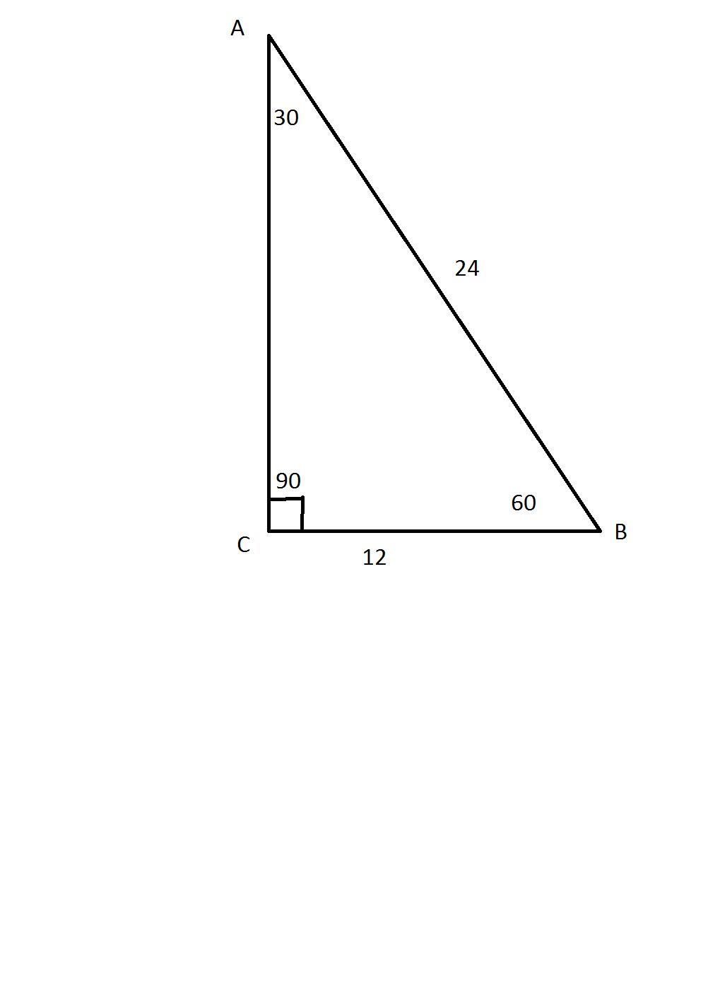 Так как угол A равен 30 градусам, то катет, лежащий напротив этого угла(BC) в 2 раза меньше AB => AB=12*2=24