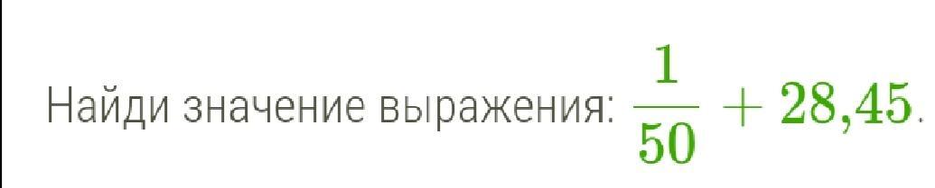 1/50 + 28,45 = 2/100 + 28,45 = 0,02 + 28,45 = 28,47