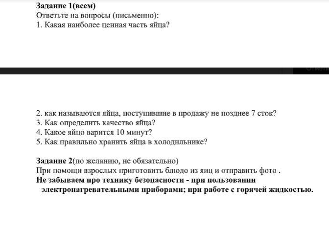 1. Наиболее ценная часть яйца — желток. В желтке содержится много жира, витамины A, D, В1, В2, В3 и РР, жироподобные вещества (лецитин, холестерин), ферменты, красящие вещества. Лецитин желтка необходим для питания нервной системы человека, участвует в обмене веществ.