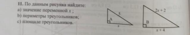 Пифагорова тройка-3,4,5. а) Нужная нам сторона равна 4 б) периметр-сумма длин всех сторон. P=3+4+5=14 в)S = √p(p - a)(p - b)(p - c) =