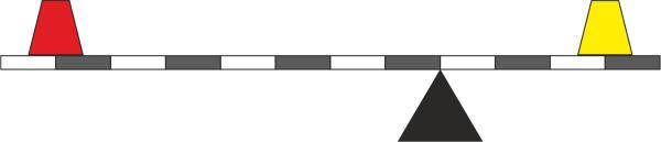Каков вес P2 расположенного справа противовеса, если все обозначенные на перекладине рычага участки имеют одинаковую длину?