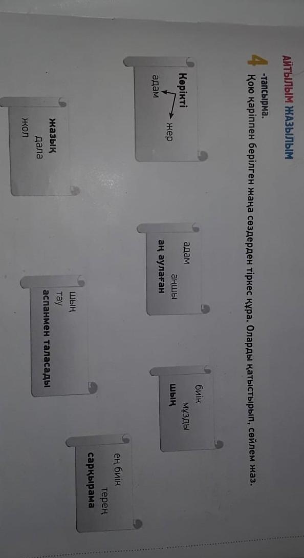 көрікті адам,аңшы аң аулаған,жазық жол вроде но это не точно,тау аспанмен таласады,ең биік сарқырама это тоже не точно