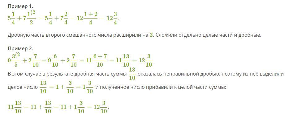 4 если дробная часть суммы получится неправильной дробью, то выделить из неё целую часть и полученное число прибавить к целой части суммы.