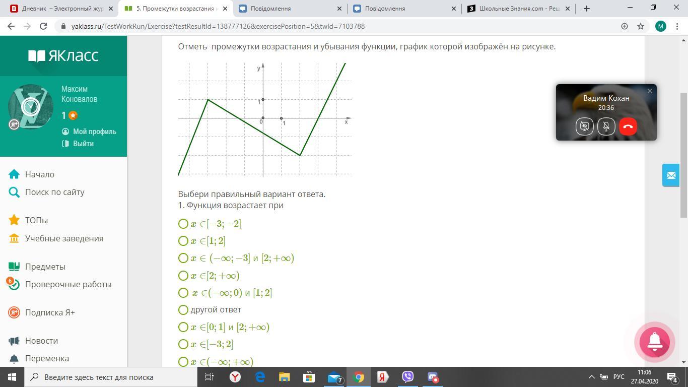 Ответ:1) от -бесконечности до -3 и от 2 до + бесконечности