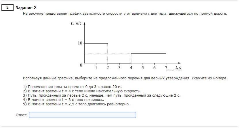 На рисунке представлен график зависимости скорости v от времени t для тела, движущегося по прямой дороге.