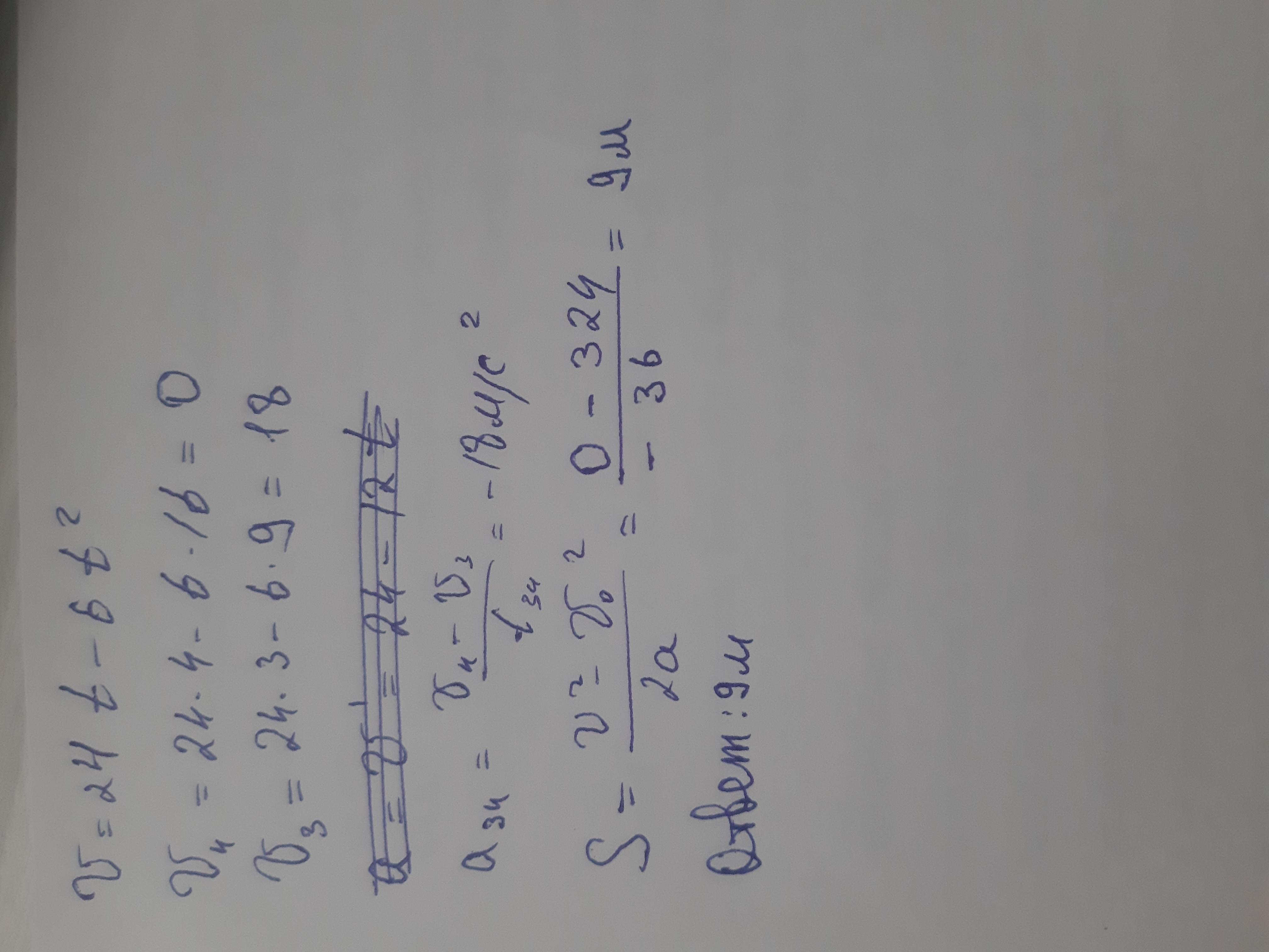 1. Скорость тела, движущегося прямолинейно, задана уравнением v=24t-6t^2.