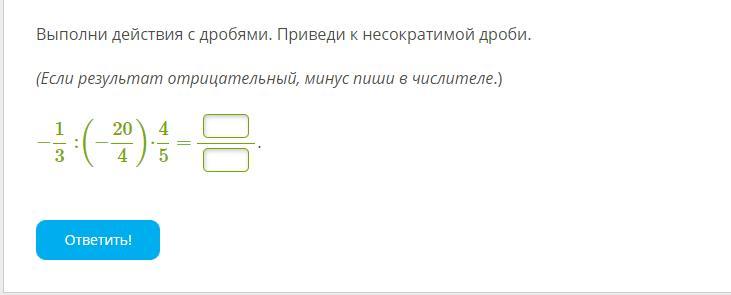 Пошаговое объяснение: -⅓ × -4/20 = -4/60= -1/15 = -1/15 × 4/5 = -4/75