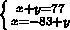 -83+y+y=77 (подставили значение x в уравнение с y)