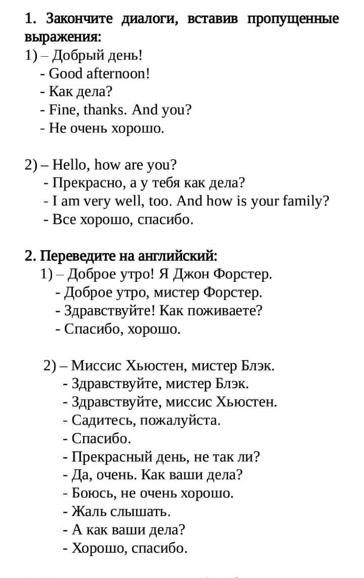 2) - Mrs. Husten, Mr. Black. - Hello, Mr. Black. “Hello, Mrs. Husten.” Sit down please. - Thank. . It's a beautiful day, isn't it? - Yes very. How are you? “I'm not very good, I'm afraid.” - Sorry to hear. - And how are you doing? - Well thank you.