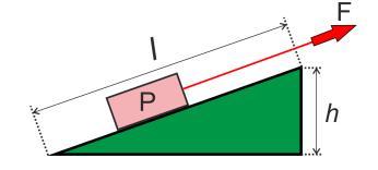 Чтобы облегчить перемещение груза, Олег использовал наклонную плоскость, высота которой h=0,5 м и длина l=1 м. Какую силу приложил Олег, чтобы переместить груз, если вес груза P=40Н?