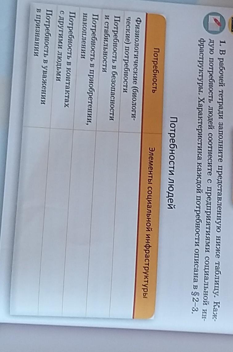 дую потребность людей соотнесите с предприятиями социальной ин-