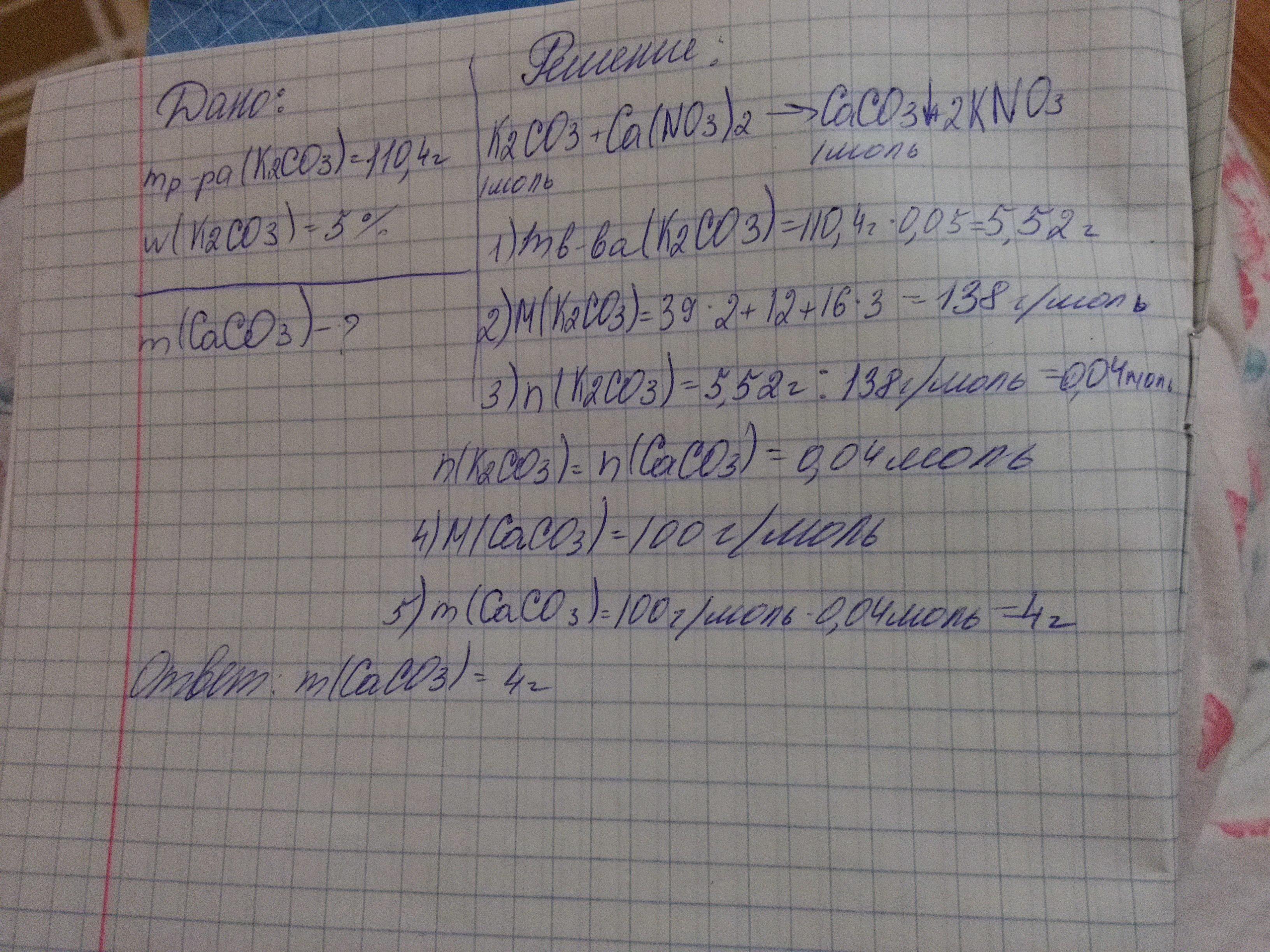 К раствору карбоната калия массой 45 г и массовой долей 3% прилили избыток раствора нитрата кальция.