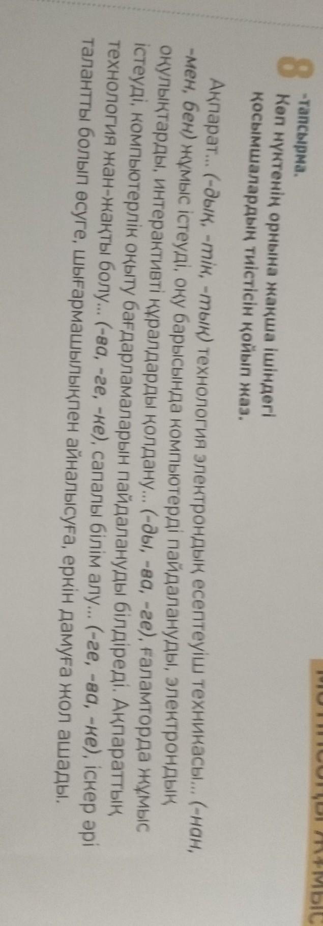 Ответ:Ақпараттық, техникасымен,қолдануды, болуға, алуға