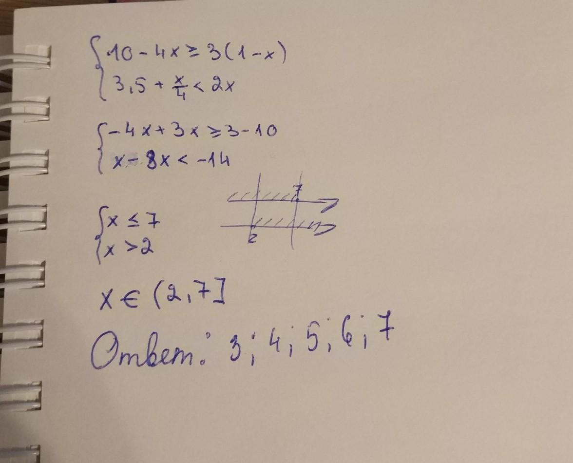 целыми решениями системы являются числа 3, 4, 5, 6, 7.