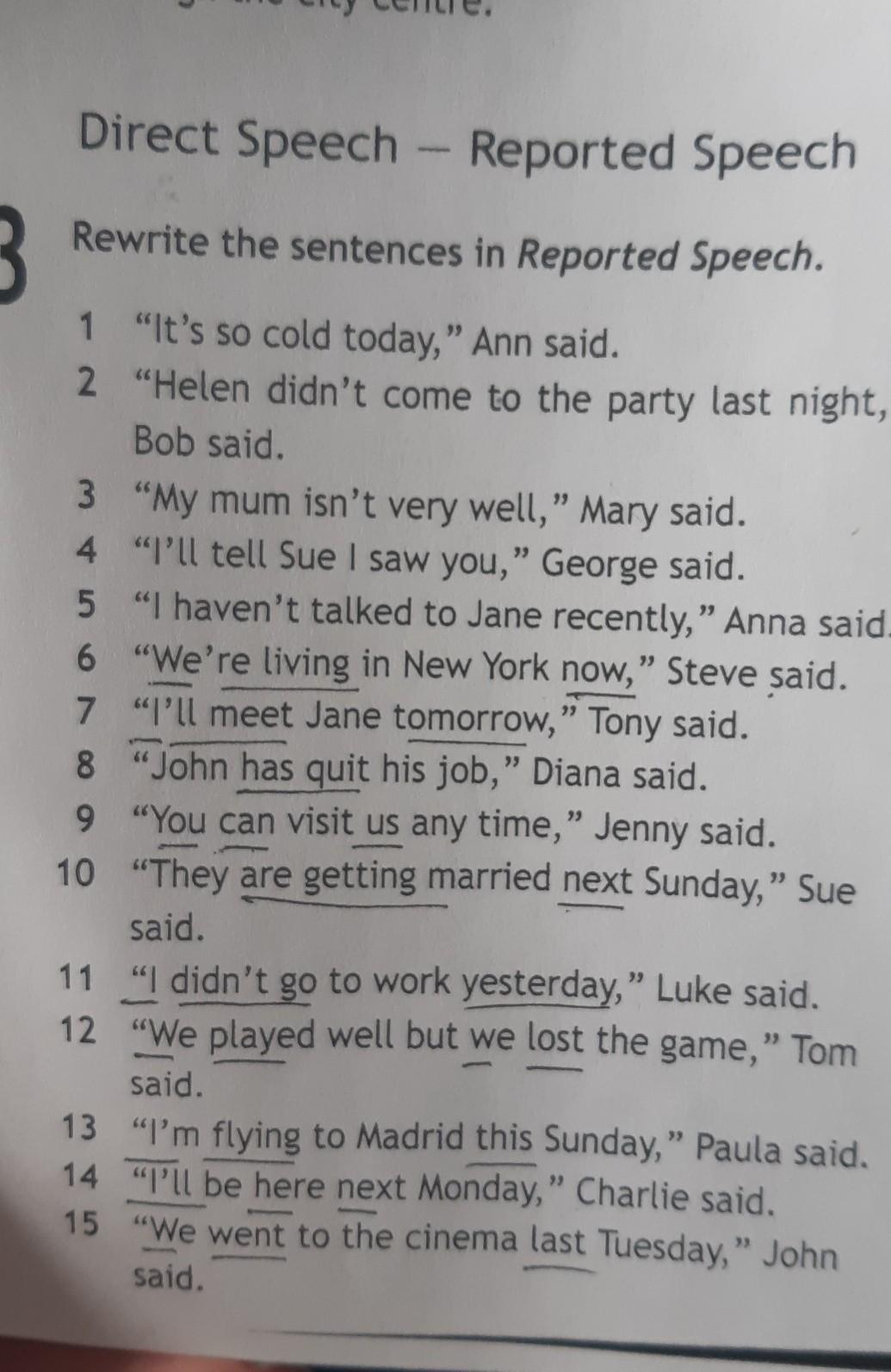 4 George said he would tell Sue that he had seen me.