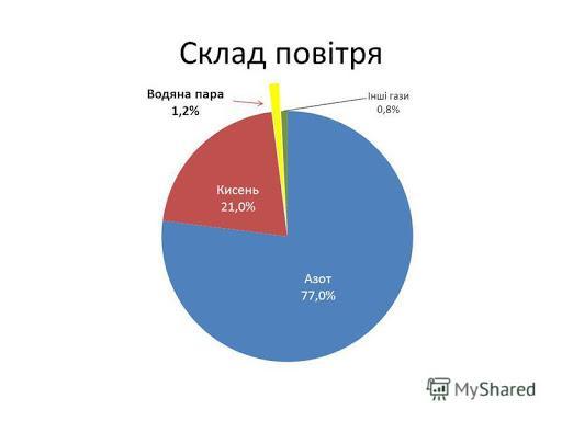 Ранжуйте речовини за масовою часткою у повітрі від найменшої.