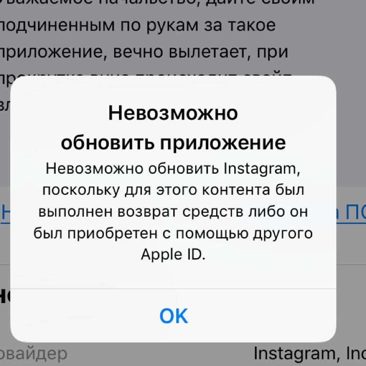 Твой IOS не может его обновить потому что либо выполнен возврат средств, то есть вернули деньги, файлы. Можешь если ты заносила деньги просто занести их обратно