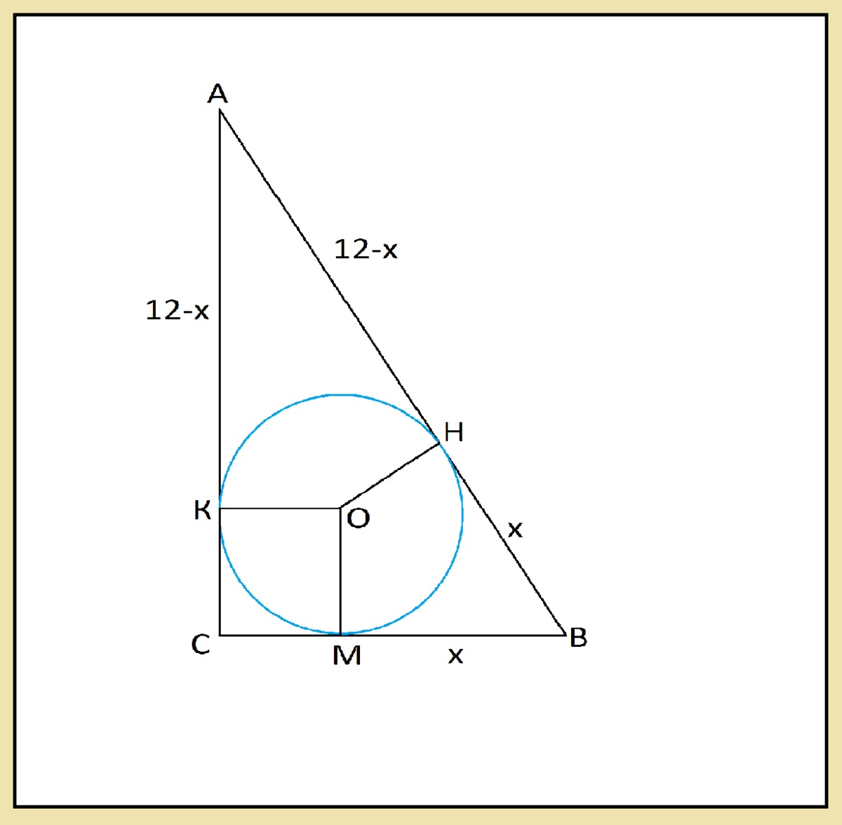 Нарисуем треугольник АВС ( С=90°) и вписанную в него окружность.