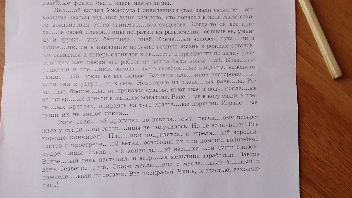 Ледяной взгляд Ужасиуса-Привидениуса (так звали смышленого хозяина замка) леденил душу каждого, кто попадал в поле магического воздействия этого таинственного существа. Когда-то он все приданое своей племянницы потратил на развлечения, оставив ее, умницу и труженицу, бесприданницей. Конченый человек, путаник и мошенник, он в наказание получил вечную жизнь в режиме остановки развития и теперь слонялся в лености и праздности по замку ужасов, так как любая его работа не могла быть конченной. Кованые решетки и пленники, закованные в серебряные кандалы, наводили священный ужас на все живое. Взгляды пленников настороженны, хотя они и уверены в себе. Некоторые из плененных ранены. Раненые, брошенные на произвол судьбы, пьют квас и воду, купленные на потерянные деньги в дальнем магазине. Раненные в ногу сидят в плетеных креслах, опираясь на туго сплетенные поручни. Израненные души их не знают покоя.