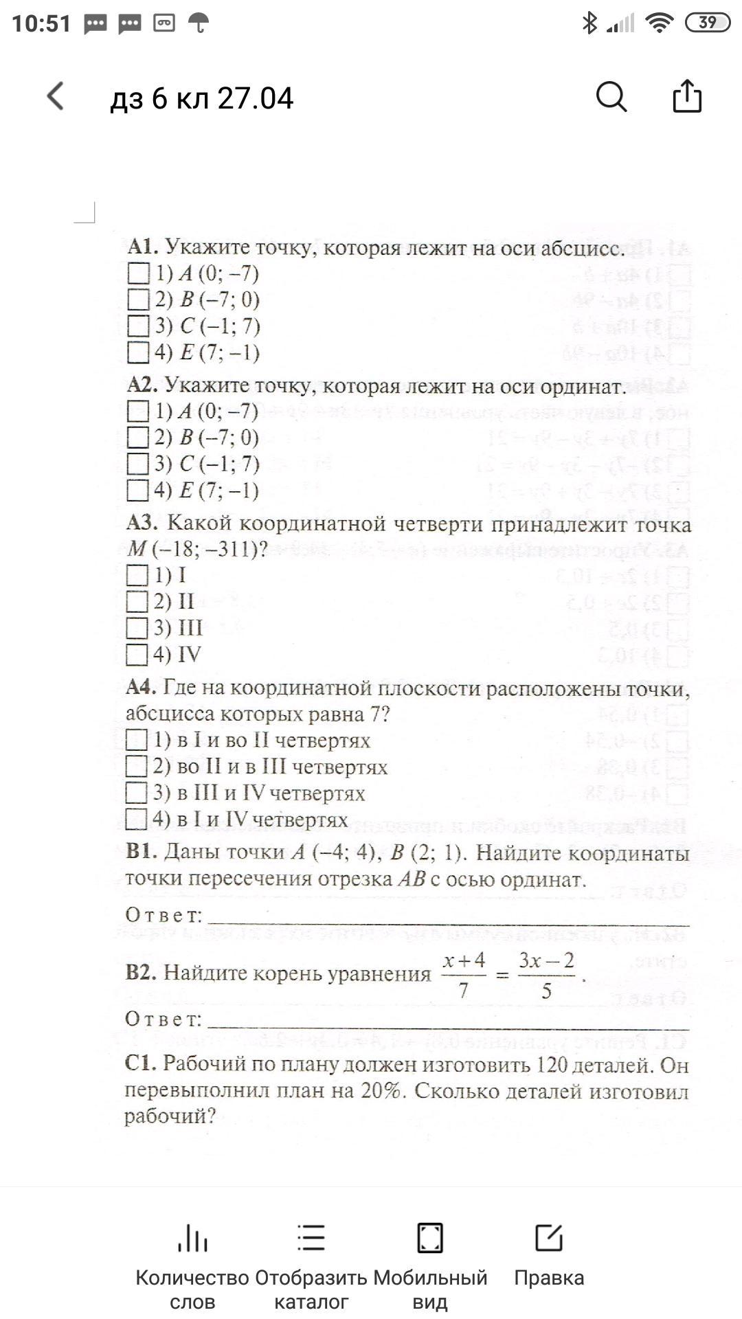 А4) х=7 , 7-положит.Это 1 и4 четверть Ответ 4