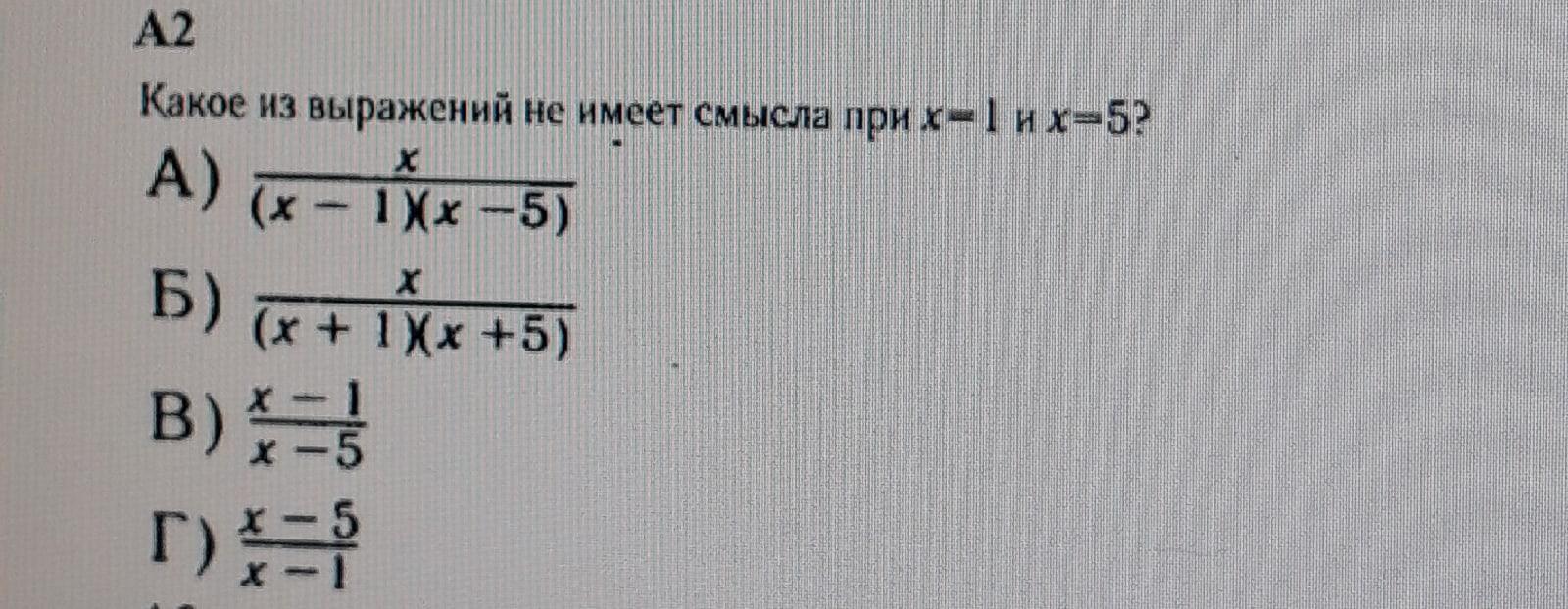 думаю ответ В , Г если подставить места х 1 и 5 , то получиться знаменателе или в числителе 0 . Если что не уверена с ответом