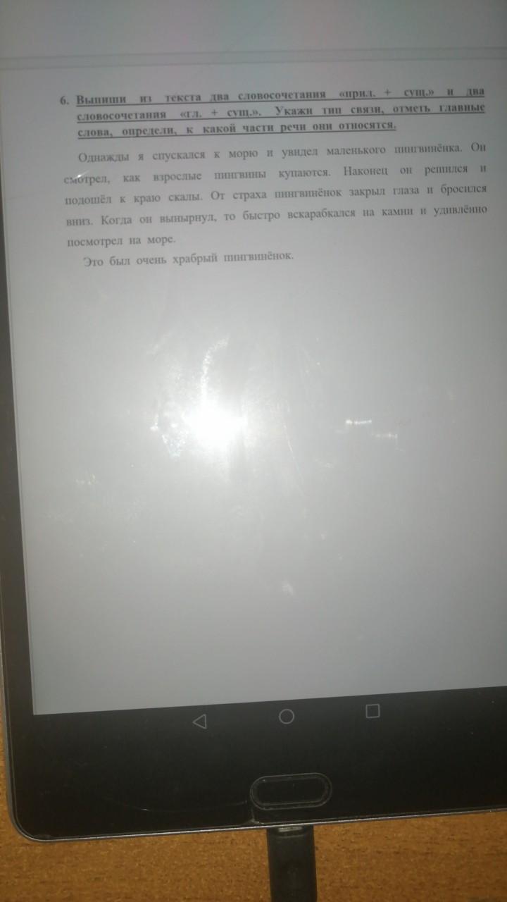 Прил.+Сущ. взрослые пингвины и храбрый пингвинёнок.Гл.+Сущ. Закрыл глаза и бросился вниз
