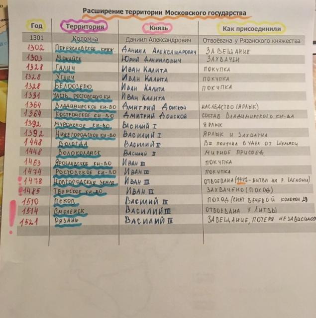 Составьте в тетради хронологическую таблицу показывающую ход создания единого Русского государства