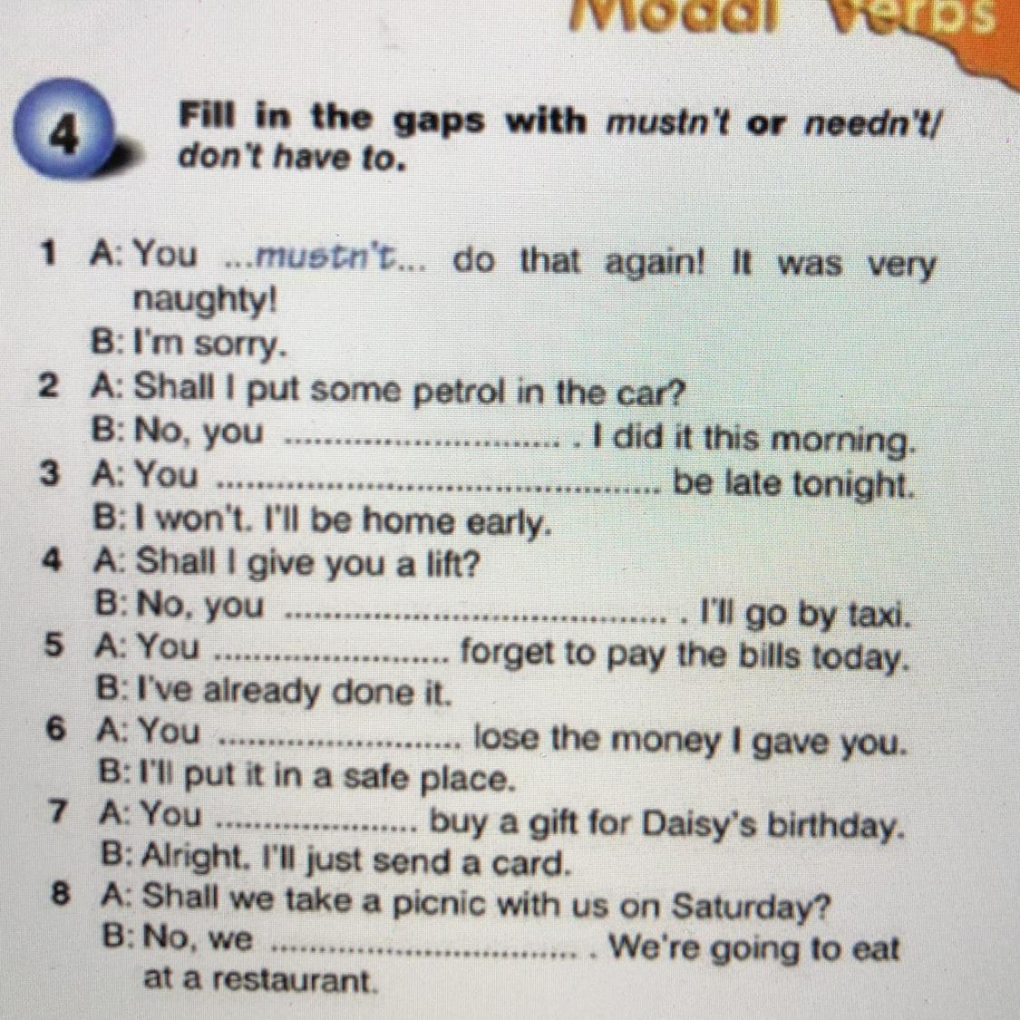 7. You needn't to buy a gift for Daisy`s birthday. Alright, I shall just send a card.