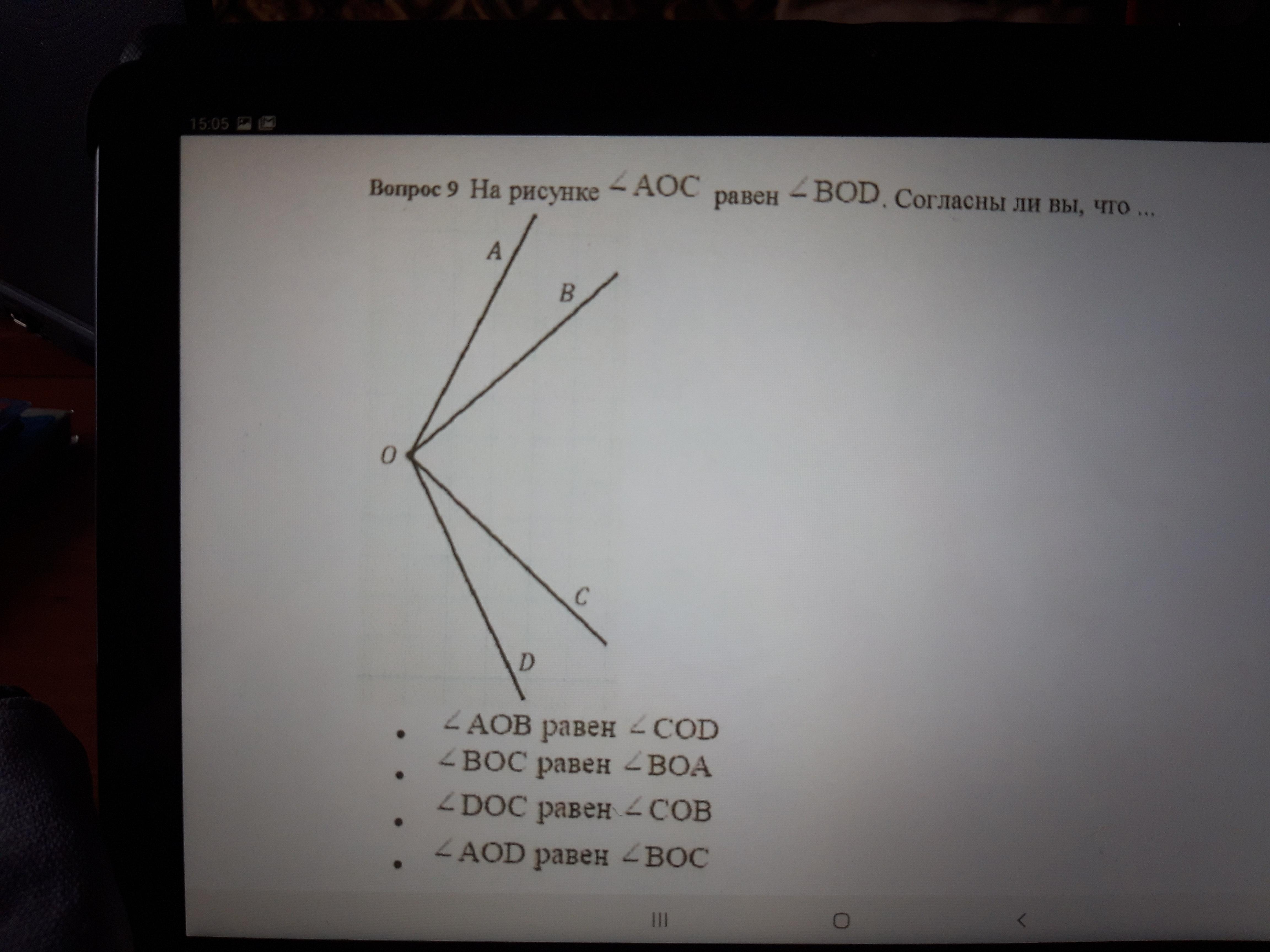 На рисунке/_ АОС равен /_ ВОD. Согласны ли вы что...