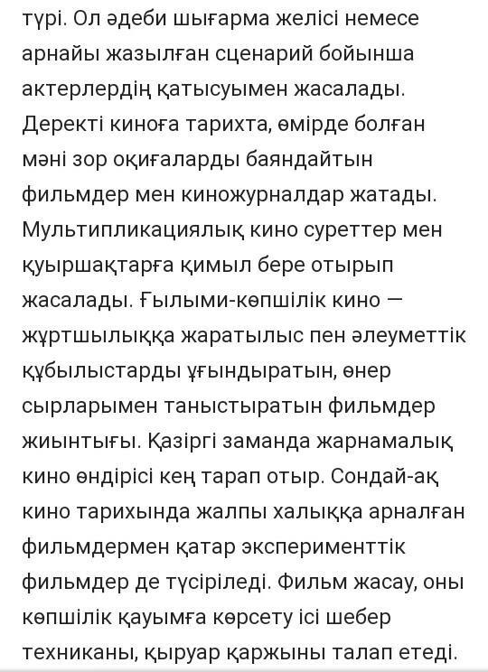 Обеснения:Бұл қазақ өнерінің киносы на арналған мәтін.Ең үстінде тұрған әдеби деген сөзді жазбай аққой.