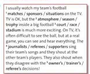 Ответ:matches,atmosphere,stadium,supporters,referee's