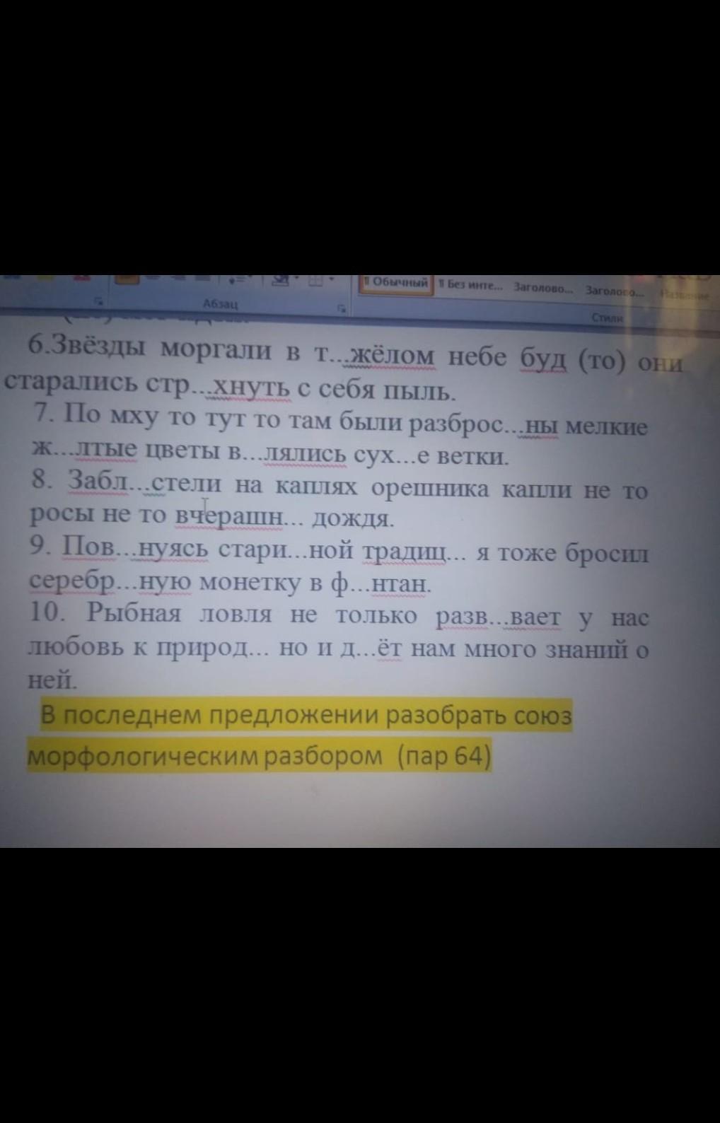 7.По мху то тут, то там были разбросаны мелкие жёлтые цветы, валялись сухие ветки