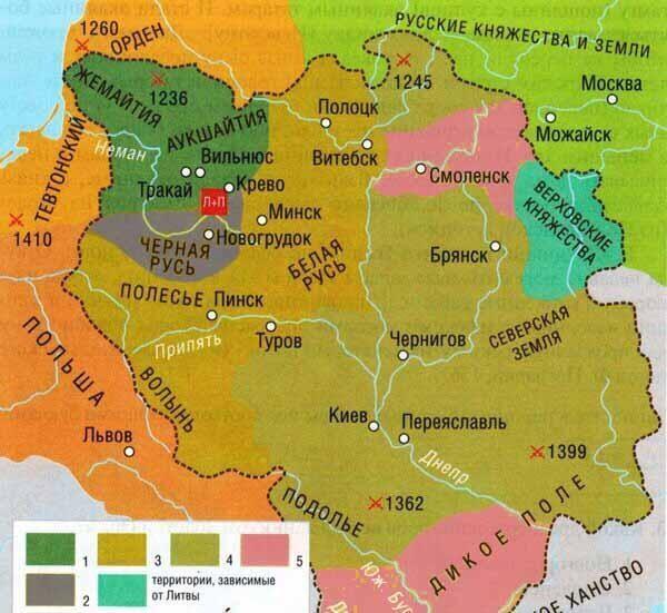 При каком князе в состав литовского государства вошла территория, обозначенная на карте цифрой 2?